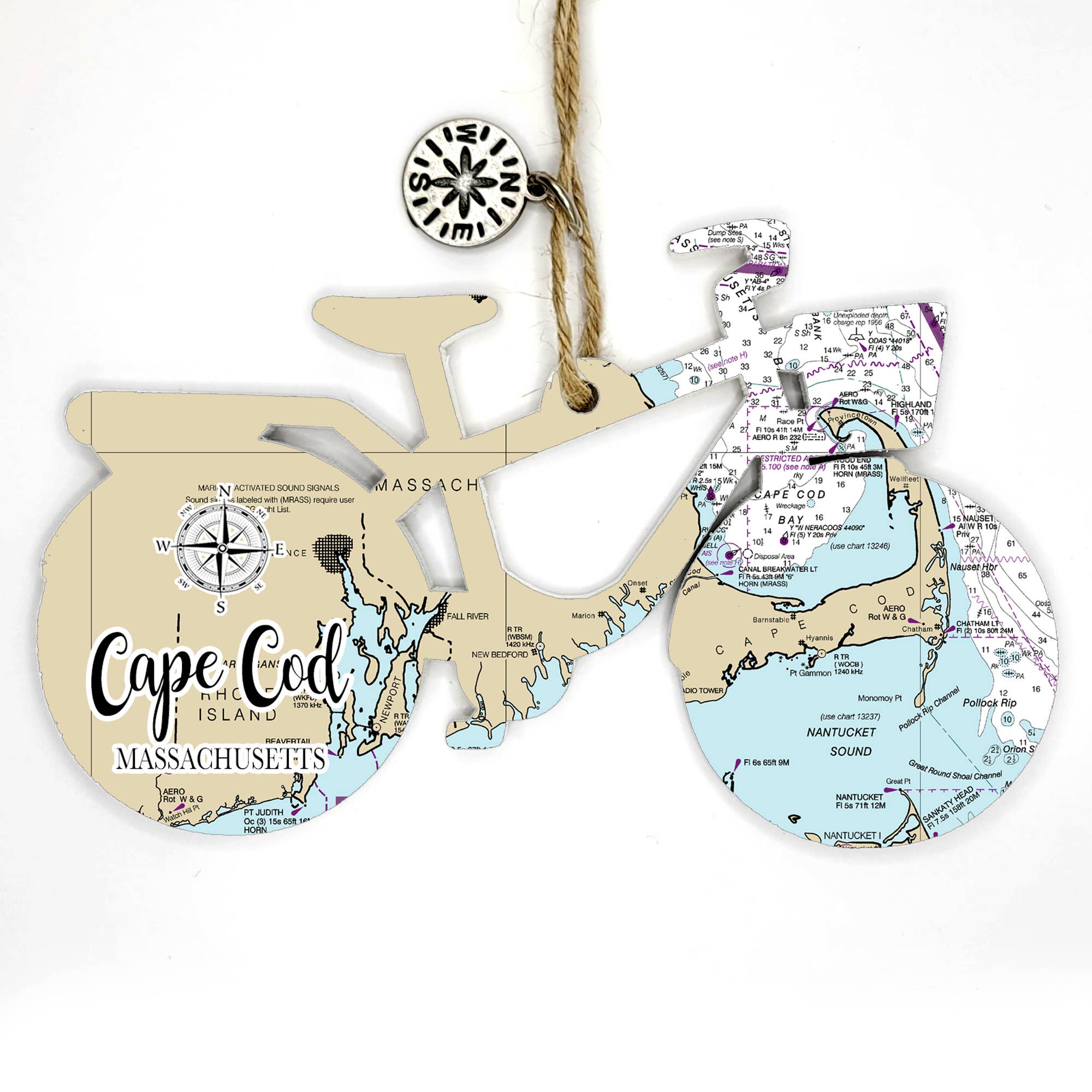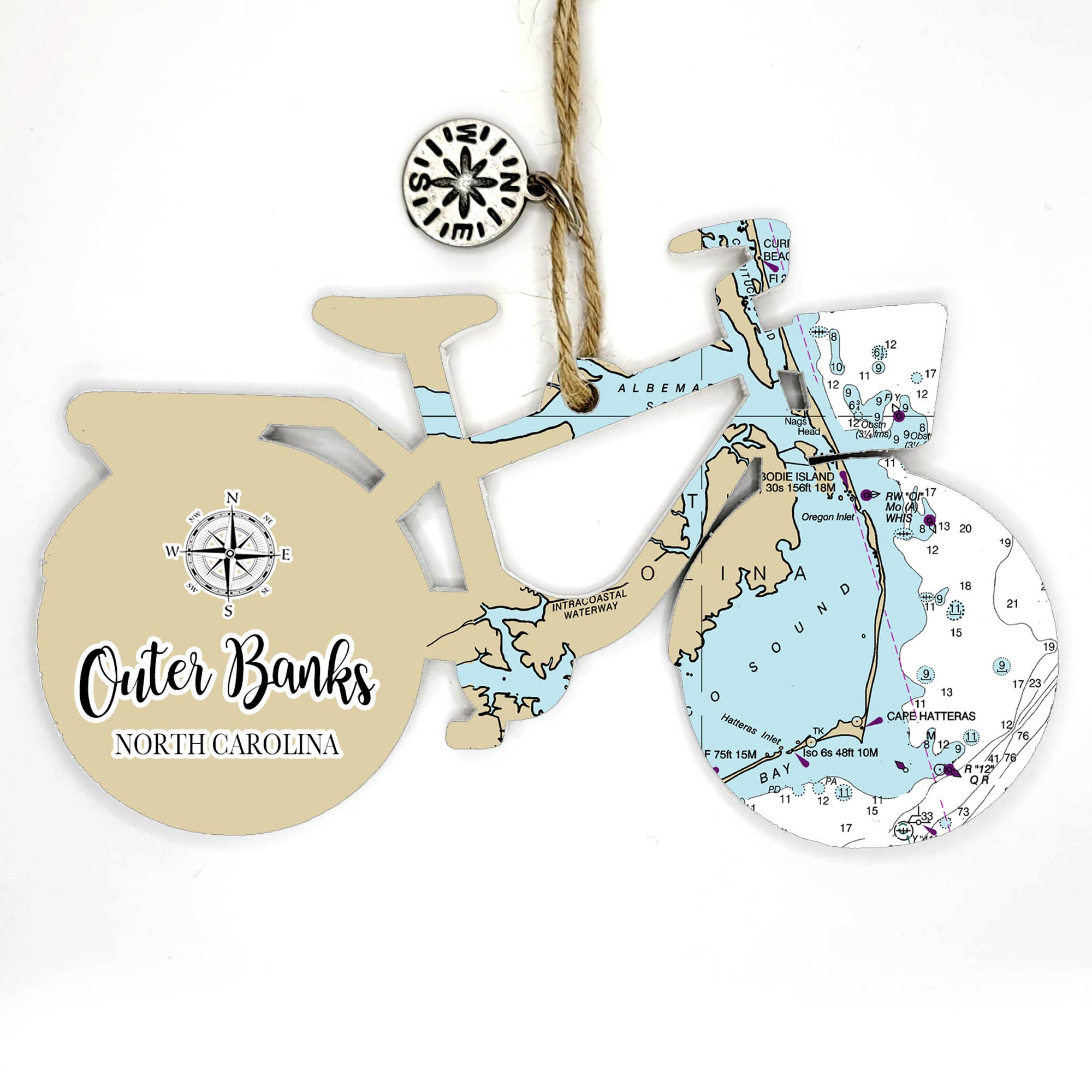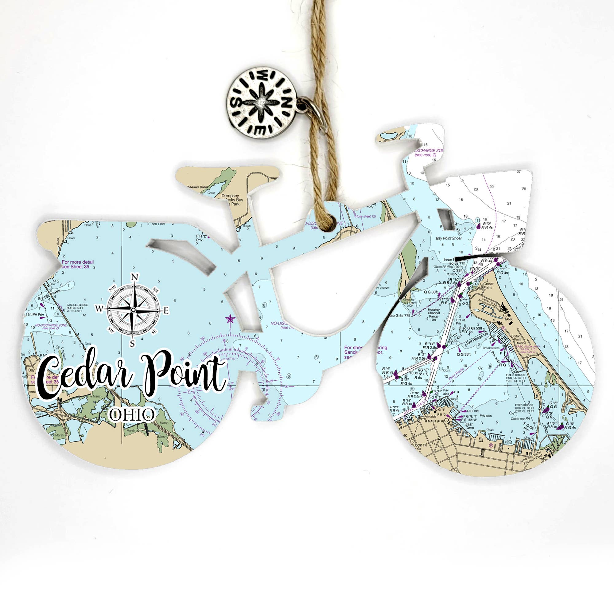 • Load image into Gallery viewer, Wood Bicycle Ornament with Map Custom Location!